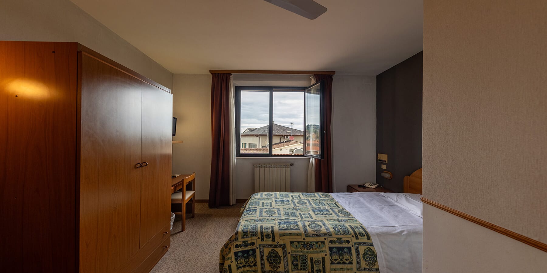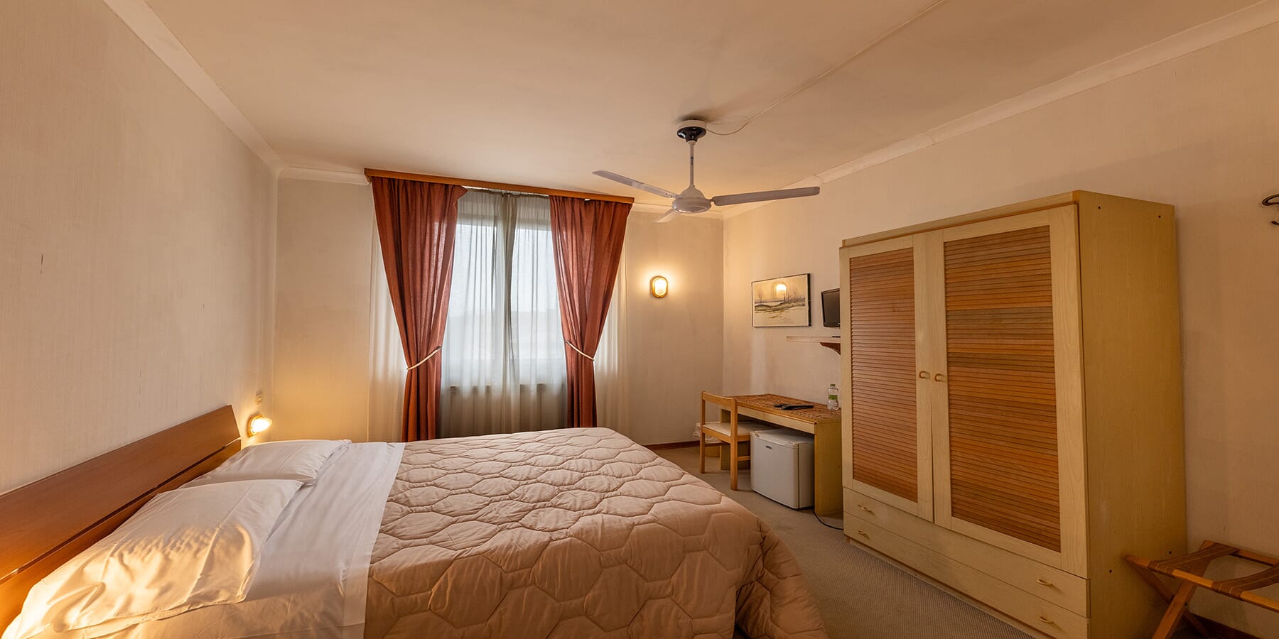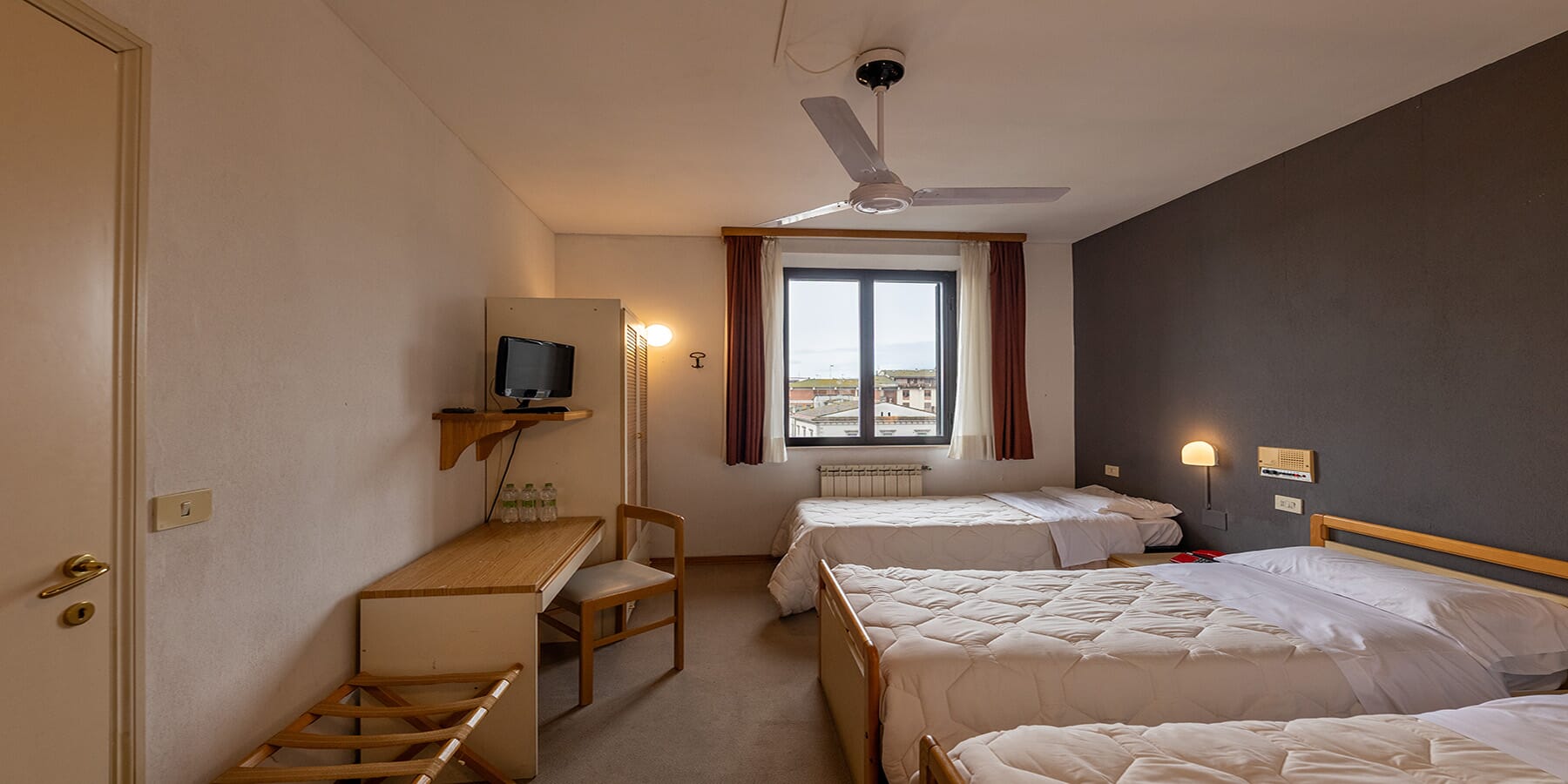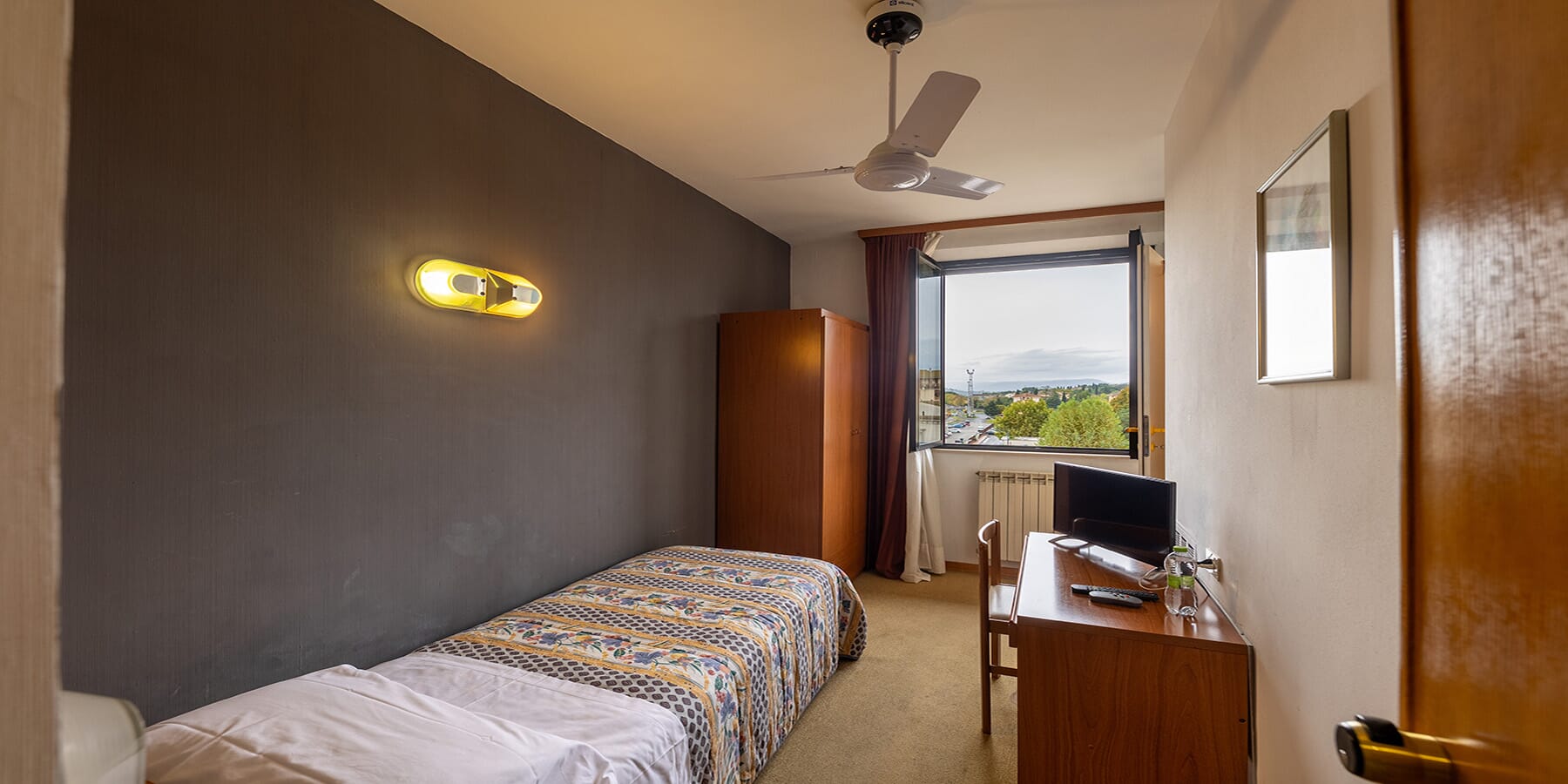The single rooms at Hotel Centrale offer comfort and convenience for solo travelers. Each room features a French bed (three-quarter size), a fully equipped private bathroom, free Wi-Fi, a fan,... ➔
